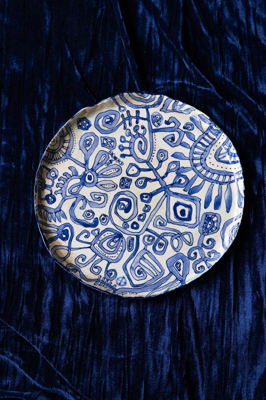 Blue Scribble Platter Number One ~ Daisy Language