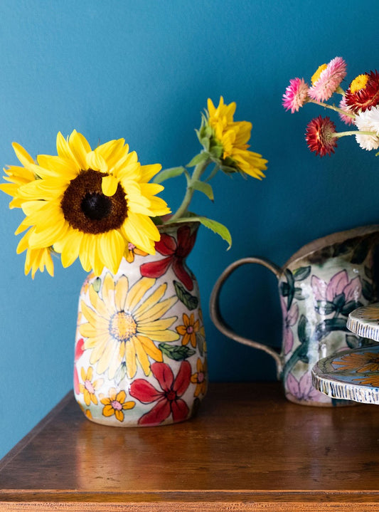 Sold outBlue Checker Daisy Vase-Jug